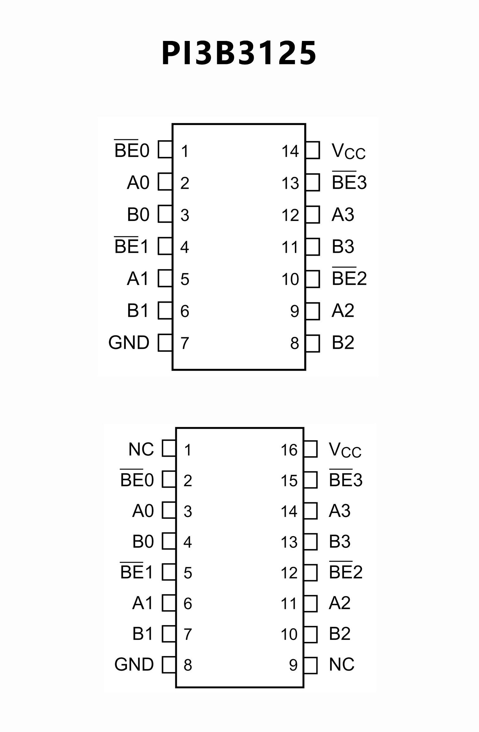 3.3V, 4-Bit, 2-Port Nanoswitchw/Individual Enables, PI3B3125 Replace SN74CBTLV3125.