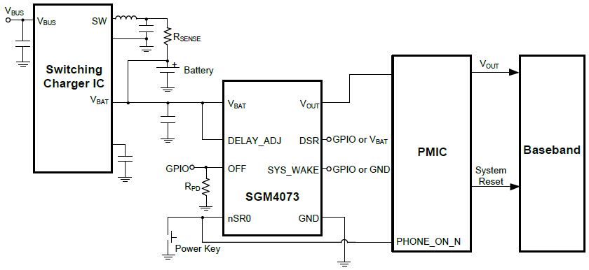 As an advanced load management switch, the SGM4073 disconnects loads powered from the DC power rail (< 6V) with stringent off-state current targets and high load capacitances (up to 200μF). The SGM4073 consists of a slew rate controlled low- impedance MOSFET switch (20mΩ typical at 3.6V) that has exceptionally low off-state current drain to facilitate compliance with standby power requirements. The slew rate controlled turn-on characteristic prevents inrush current and the resulting excessive voltage drop on power rails.