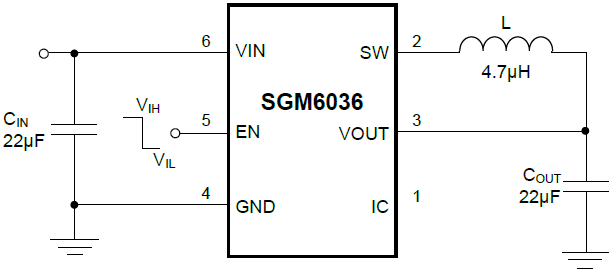 The SGM6036 family integrates an optimized hysteretic controller for low-power applications. The internal circuitry uses a time-based sampling system to reduce the average quiescent current.